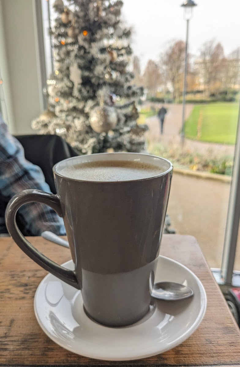 Nice little café in the middle of the victoria park in Stafford. The view is nice. There are indoor and outdoor seats. The coffee tasted good. It was cozy and warm on a rainy January day. The café is very close by the train station. We came to the café while waiting for our train and to escape the rain.