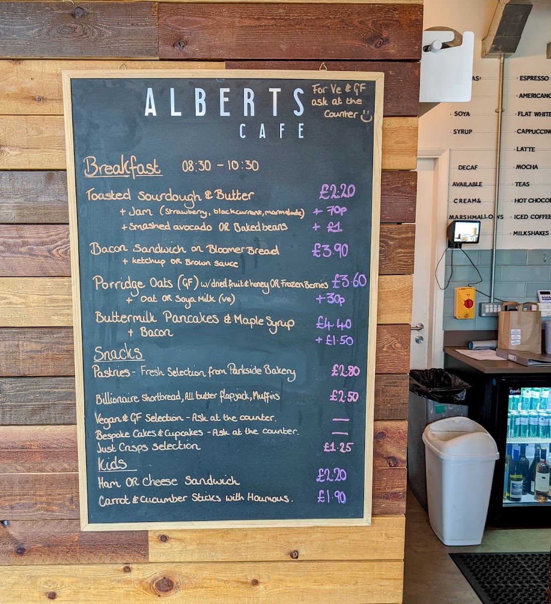 If you're in the mood for a bite, try one of their delicious sandwiches or paninis. Options like the Hummus, Spinach & Red Pepper Panini or the classic Ham, Tomato & Mature Cheddar Panini are sure to please. Numerous customer reviews highlight the attentive service and the cafe's dog-friendly policy, making it an ideal spot for all. Whether you’re enjoying afternoon tea or a quick lunch while waiting for your train, Alberts Cafe promises a warm and friendly experience, ensuring you leave with a smile.